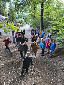 Podczas całego pobytu nie brakowało również gier i zabaw zespołowych, które sprzyjały integracji, współpracy i dobrej zabawie. Uczniowie brali udział m.in. w konkurencjach sportowych, zabawach ruchowych na świeżym powietrzu oraz rozgrywkach terenowych.