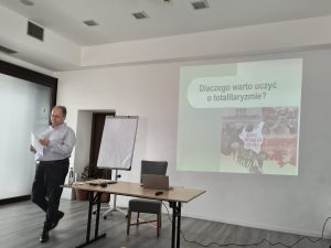 Podczas szkolenia uczestnicy brali udział w zajęciach i prelekcjach prowadzonych przez pracowników OBEN IPN we Wrocławiu: Pana Grzegorza Kowala (naczelnika), Pana Wojciecha Trębacza i Pana Mikołaja Sokalskiego, które pozwoliły im poznać różnorodne metody pracy z młodzieżą oraz sposoby popularyzowania wiedzy historycznej w atrakcyjnej formie.