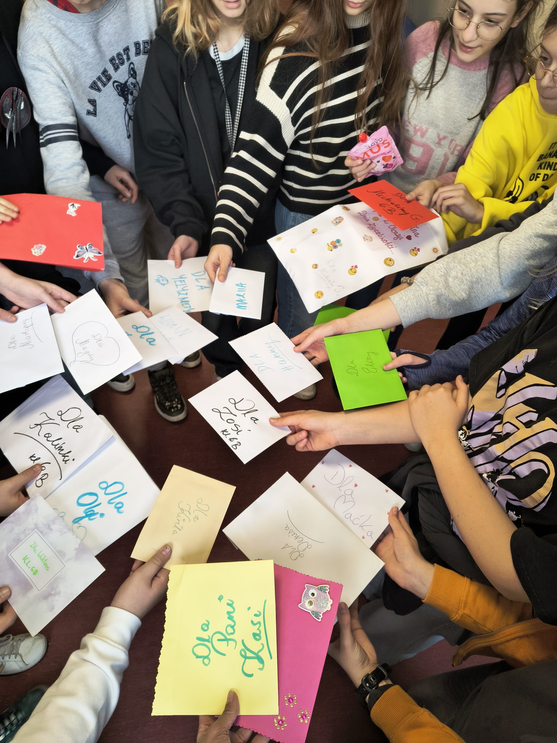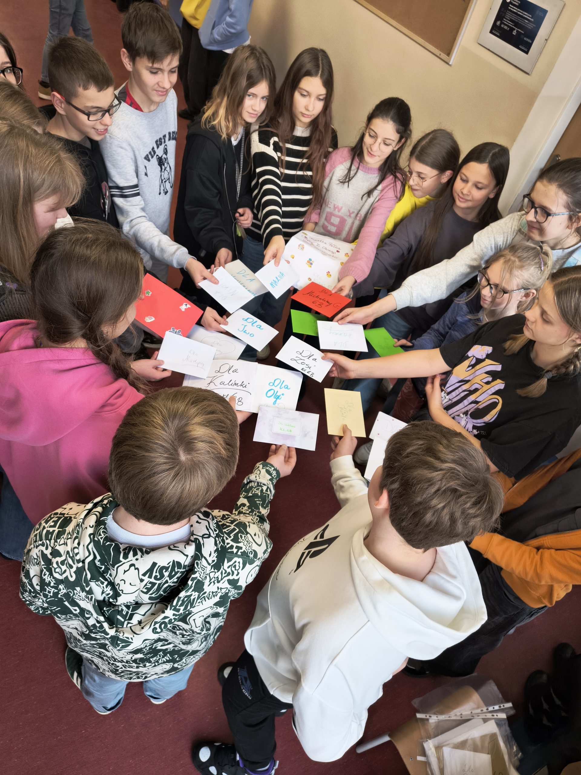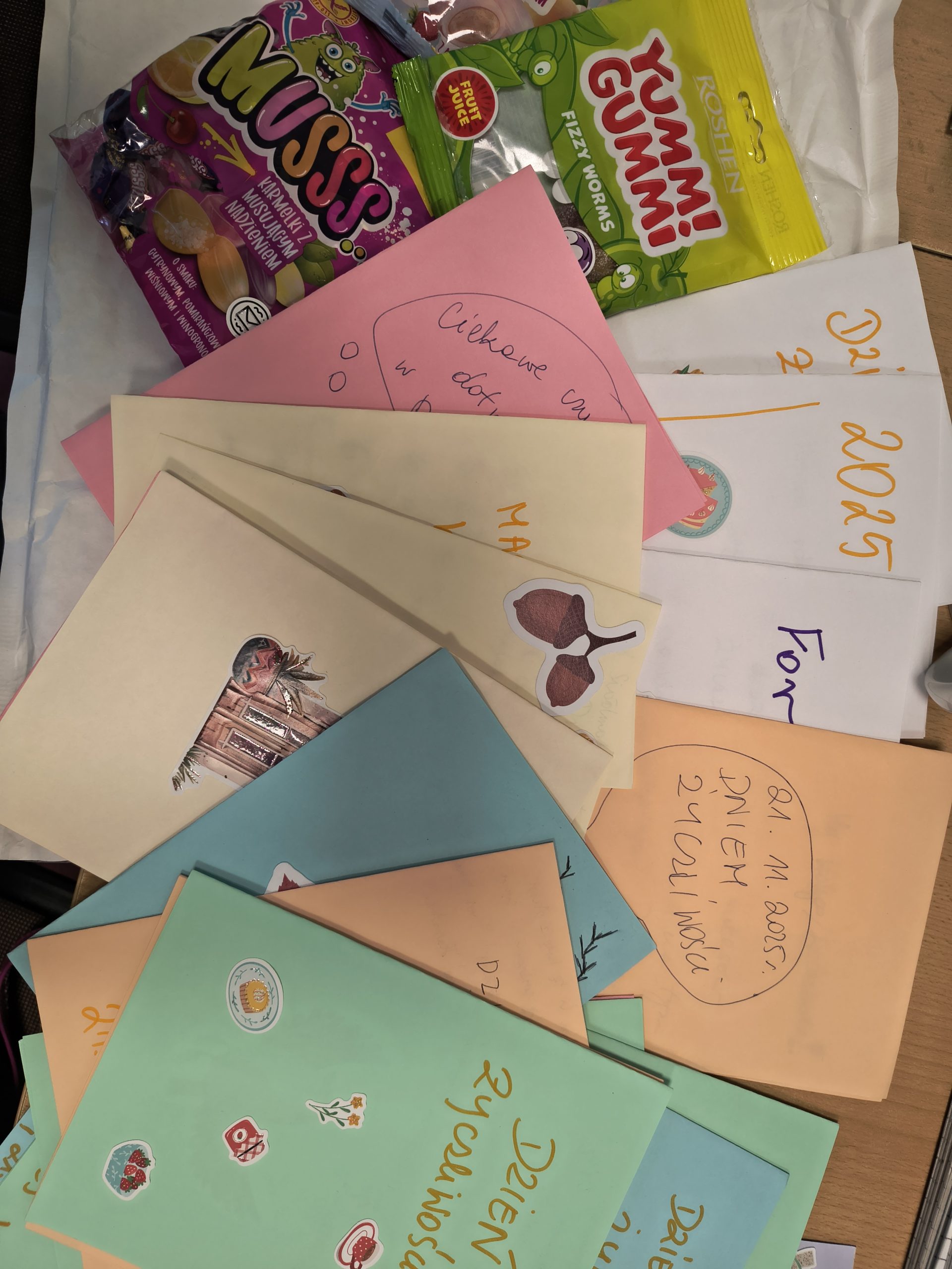 Serdeczne podziękowania kierujemy do wszystkich szkół, które przyłączyły się do akcji — zarówno za piękne życzenia, jak i za drobne gesty, które sprawiły naszym uczniom ogromną radość: cukierki, żelki, balony oraz materiały promujące Wasze miasta. Każdy z tych upominków dodał wymianie wyjątkowego charakteru i wspaniale uzupełnił atmosferę życzliwości.