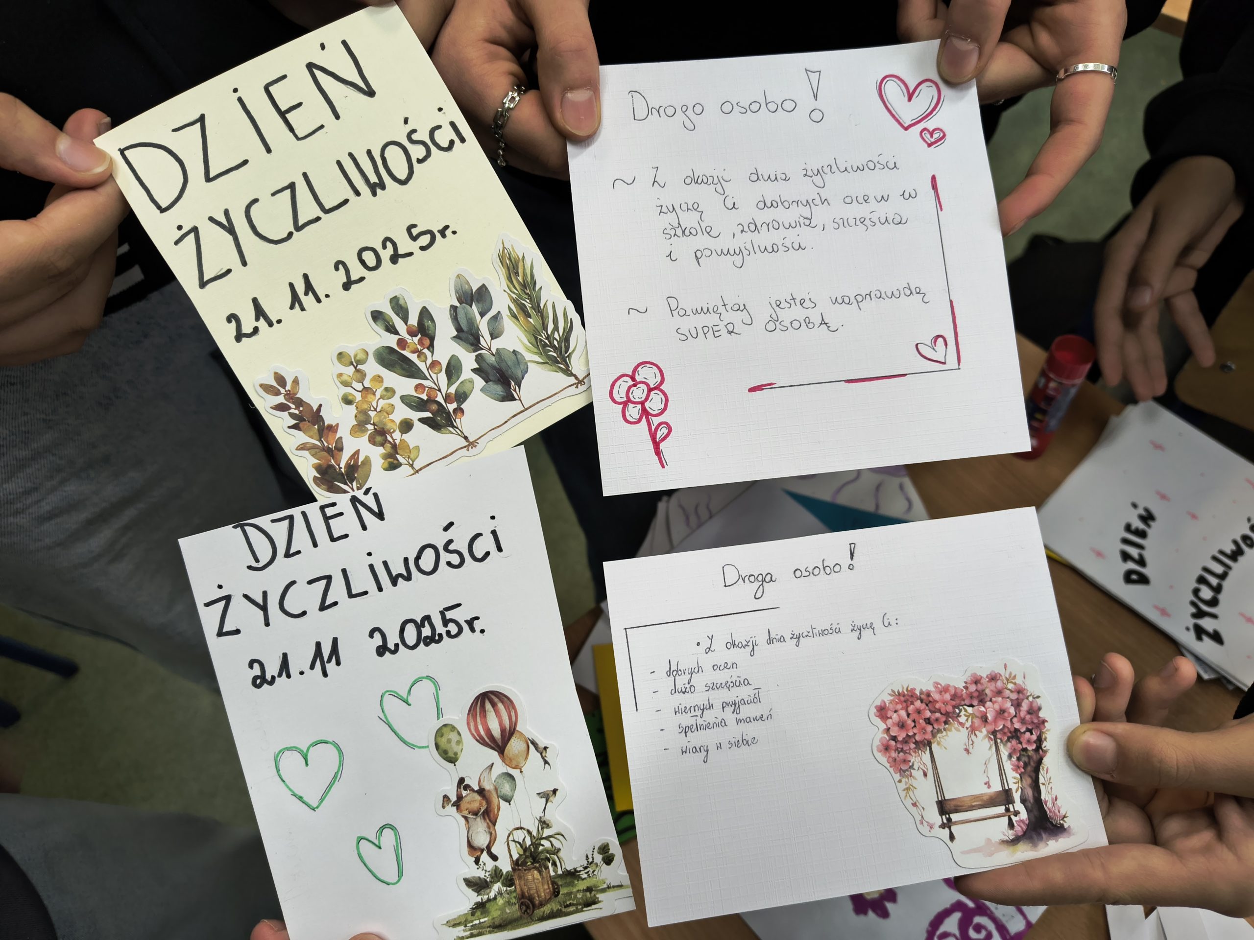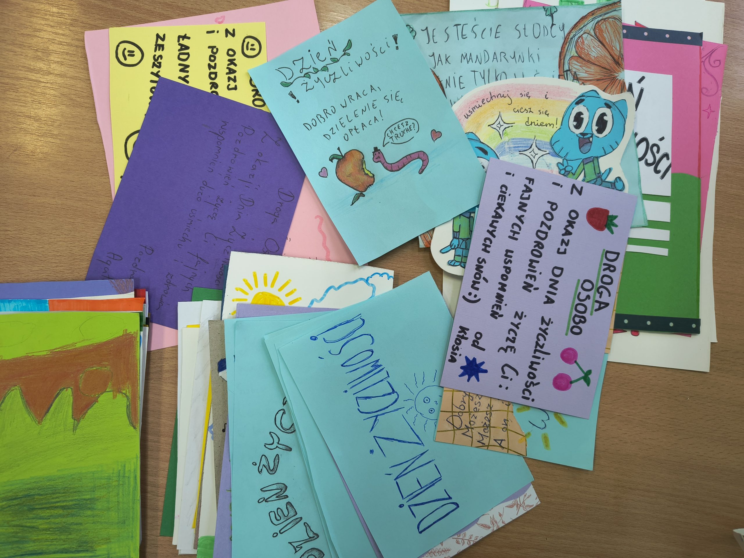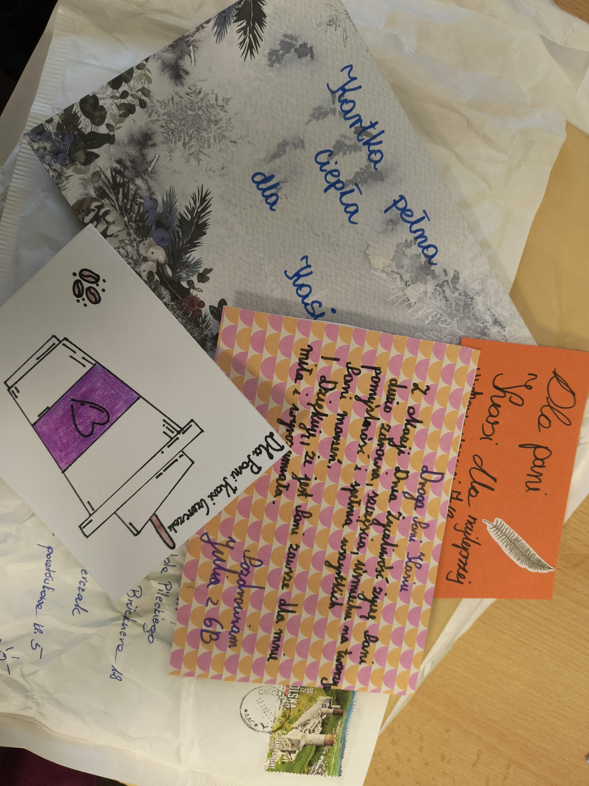 Serdeczne podziękowania kierujemy do wszystkich szkół, które przyłączyły się do akcji — zarówno za piękne życzenia, jak i za drobne gesty, które sprawiły naszym uczniom ogromną radość: cukierki, żelki, balony oraz materiały promujące Wasze miasta. Każdy z tych upominków dodał wymianie wyjątkowego charakteru i wspaniale uzupełnił atmosferę życzliwości.