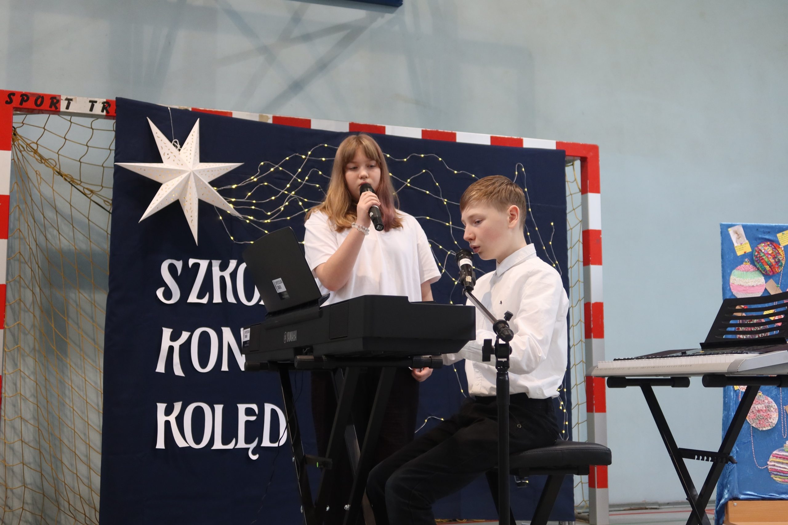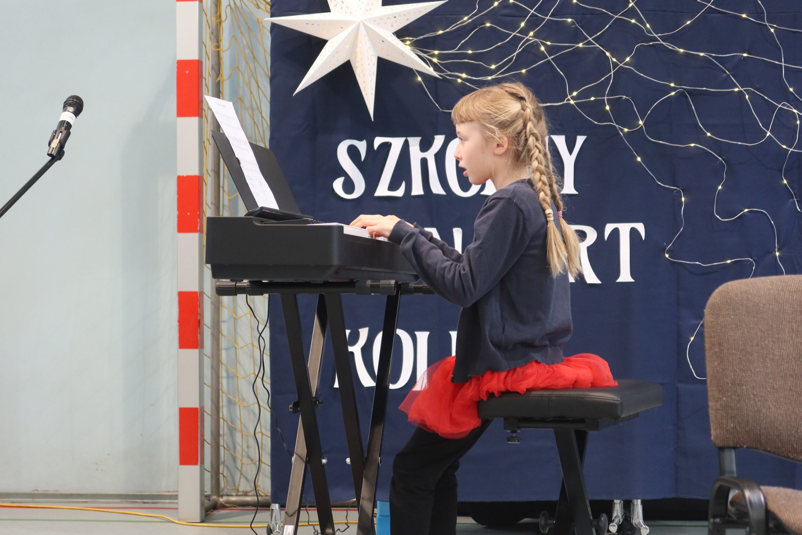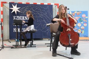 Podczas koncertu wystąpił chór szkolny oraz chętni uczniowie, którzy zaprezentowali swój talent muzyczny, śpiewając kolędy i grając na różnych instrumentach.
