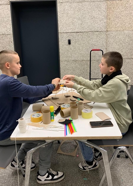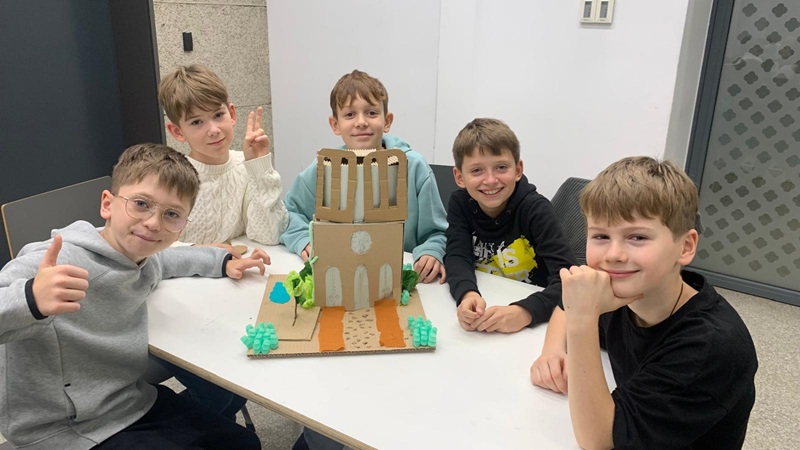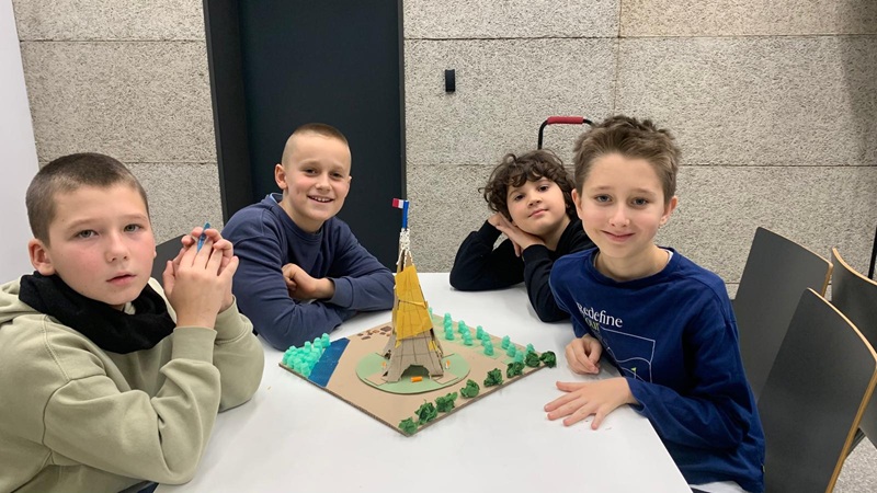 Na koniec warsztatów podzielone grupy zrobiły makiety znanych budowli.
