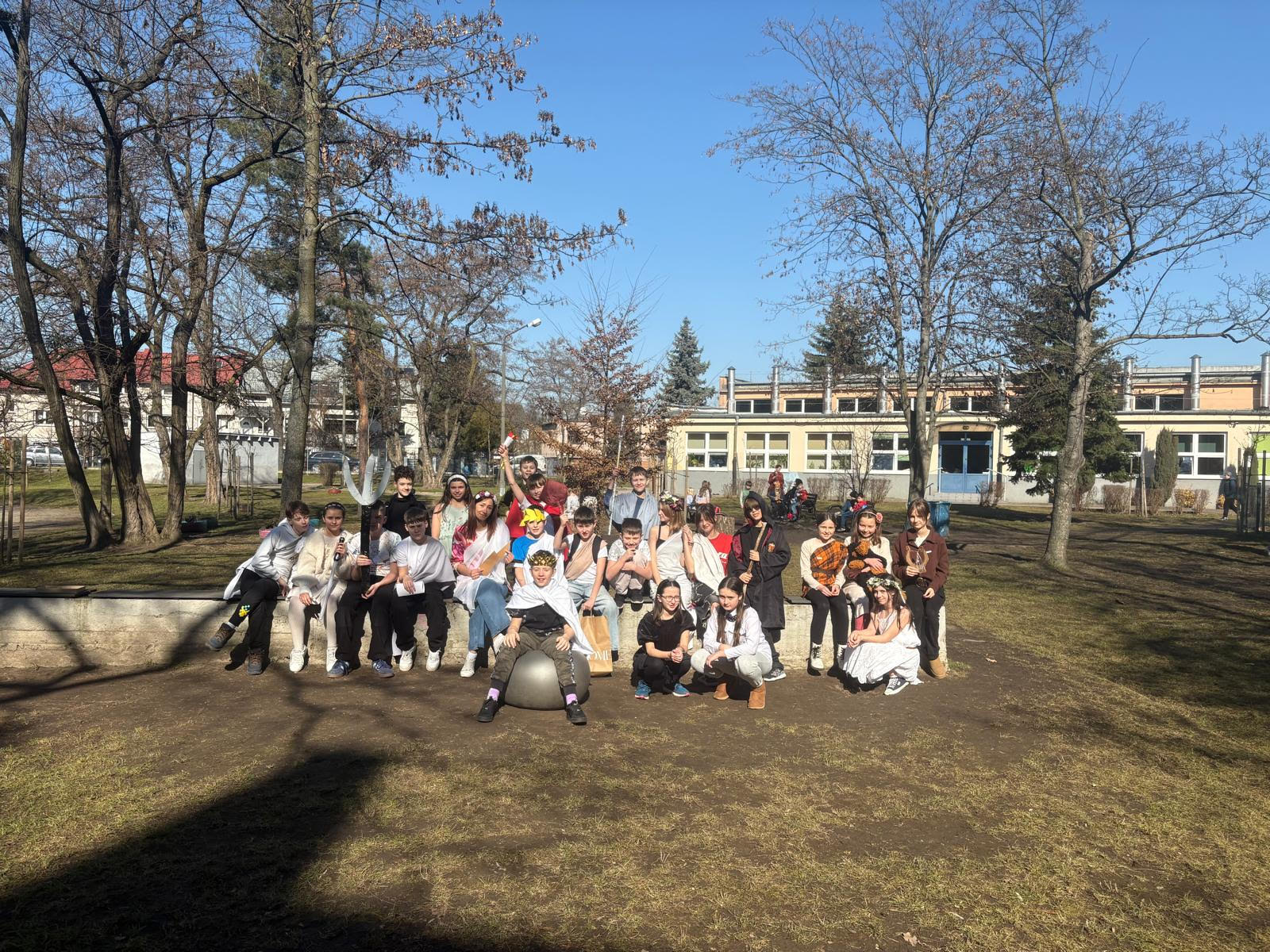 6 marca nasza sala lekcyjna zamieniła się w mityczny Olimp. Podczas lekcji uczniowie klas 5a i 5b przenieśli się do świata mitologii greckiej i wzięli udział w „Uczcie bogów”. Wcielili się w postacie znane z mitów. Wśród gości pojawili się bogowie, herosi oraz niezwykłe stworzenia mitologiczne. Uczniowie z dużym zaangażowaniem przygotowali stroje i rekwizyty.