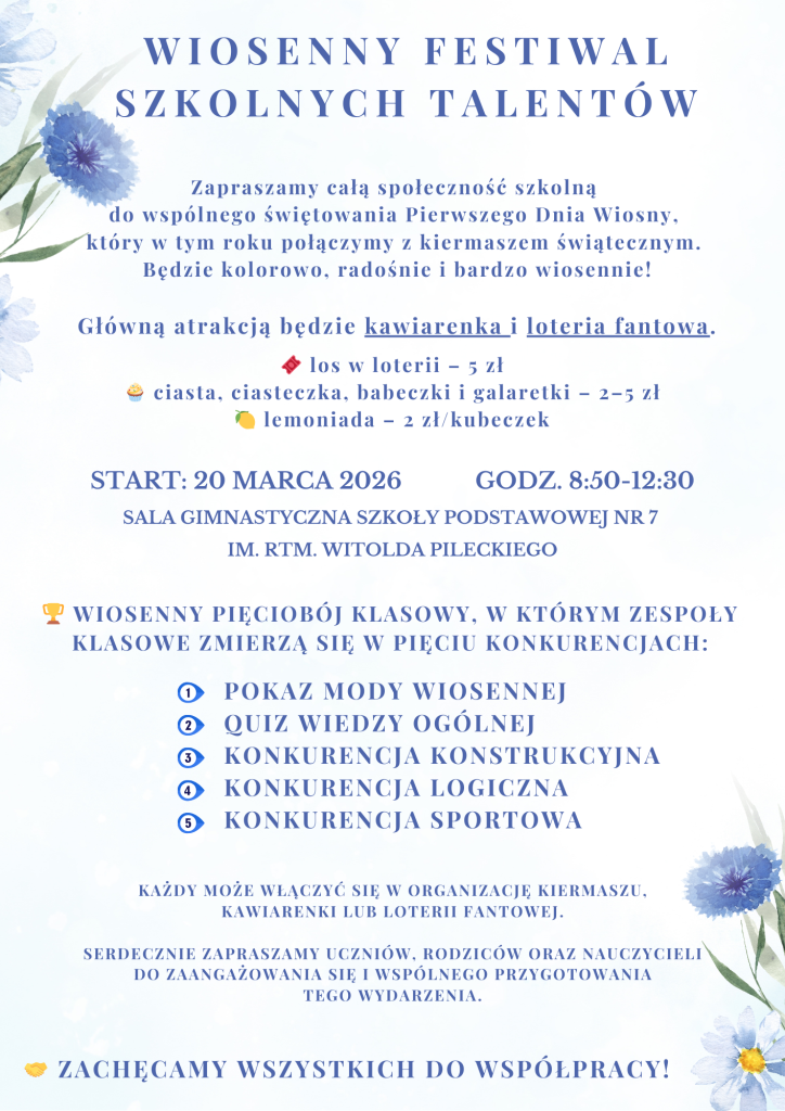 Liczymy na wspólną zabawę, wiosenną atmosferę i zaangażowanie całej społeczności szkolnej! 🌼