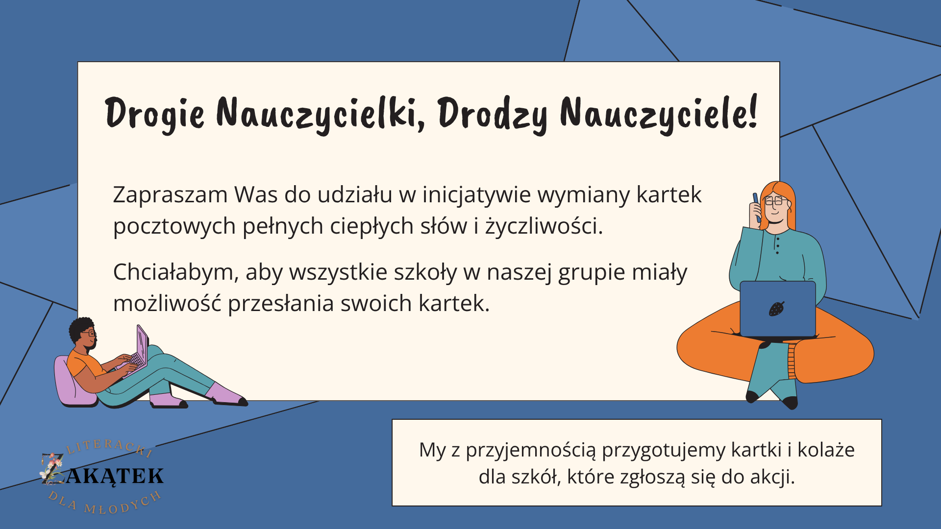 Akcja organizowana przez Panią Katarzynę Czerczak – polonistkę i Literacki Zakątek dla Młodych (profil edukacyjny na Facebooku).
